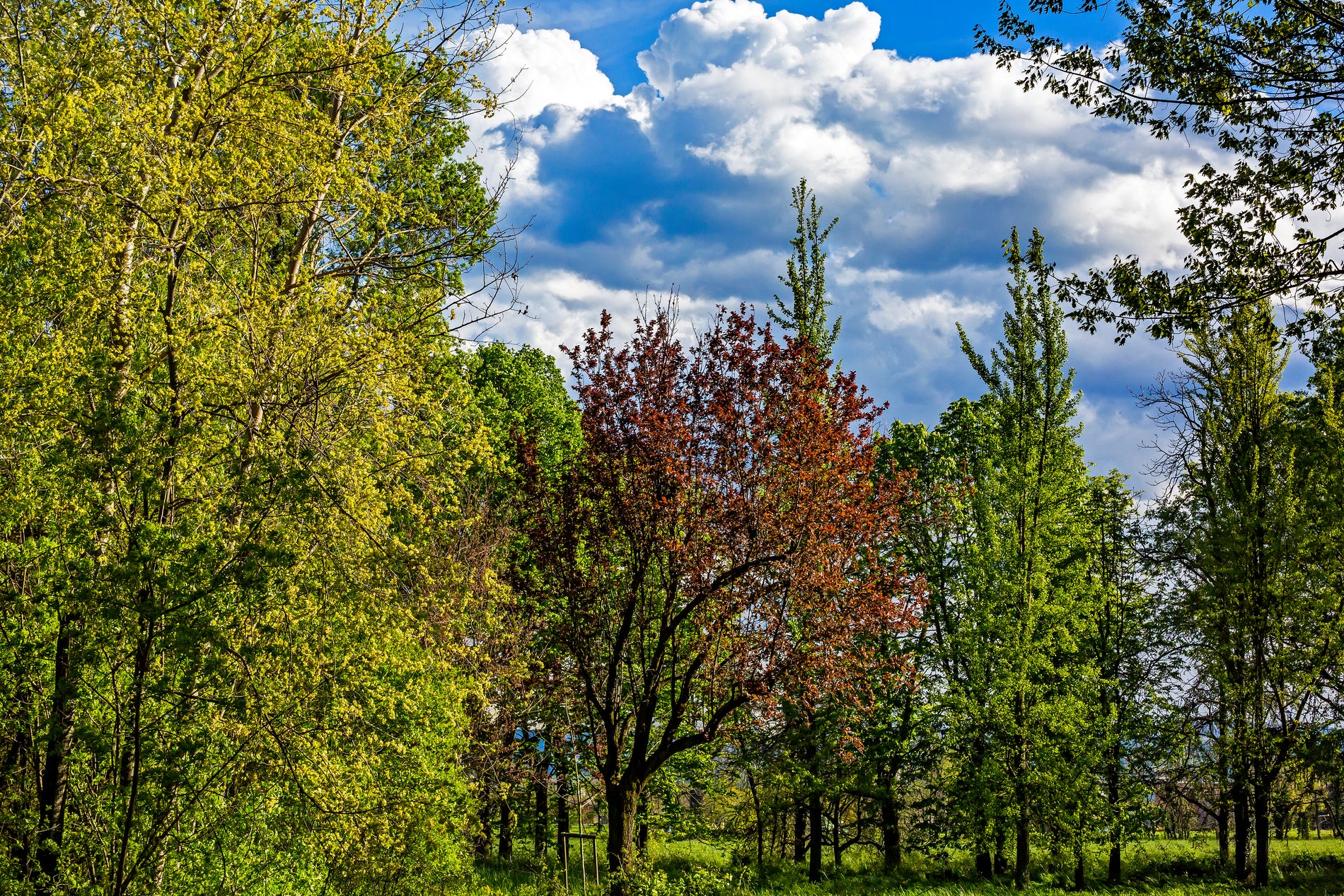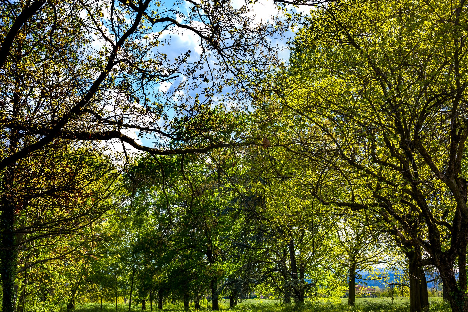 I rami degli alberi si intrecciano in un abbraccio protettivo e la luce del sole filtra attraverso le foglie, creando un gioco di luci e ombre suggestivo.
